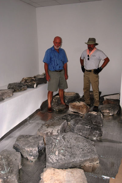 There, the largest stones were loaded into the bed of AND Construction’s truck, thickly padded with heavy insulation material. The remaining stones were placed in the trunks and back seats of four private vehicles for the slow, cautious trip to the Museum’s facility in Grace Bay where they were off-loaded for storage until the next phase of the project begins. Amazingly, there was no damage to the stones or injuries among the work crew.