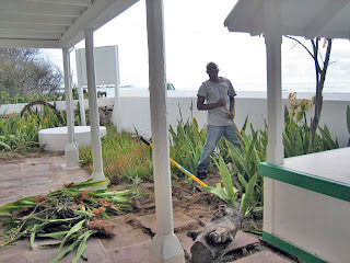 Joseph and I decided to tackle a small part of the Mother In Law infestation to make more room on the portico for the cruise tour visitors. It took 2 hours plus.