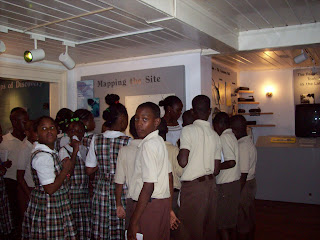 Today, we have had a full day of cruise ship visitors, a couple divers, and then at two the six grade classes from Eliza Simmons Primary School came for a field trip. The museum has been full all day. This is at a time when we are down a temporary staff member as Jessica has completed her volunteer work in the archives and has returned to Boston. She had been covering the guided cruise ship tours as well.Lina came in this morning to guide the first tour. The Aliatte came in between classes at the college to give the children’s tour. Aliatte has become of the key staff leaders of the children’s program and though she is now well into her second year of a teaching certificate, she still comes into work at the museum often to assist with both tours and children’s club planning.